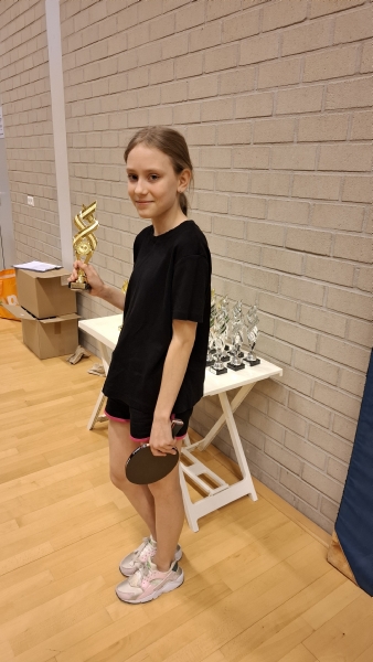 Dominique zat in een 5-kamp en zij won al haar wedstrijden met slechts 1 verliesgame. Een prima prestatie van haar en een dik verdiende beker.